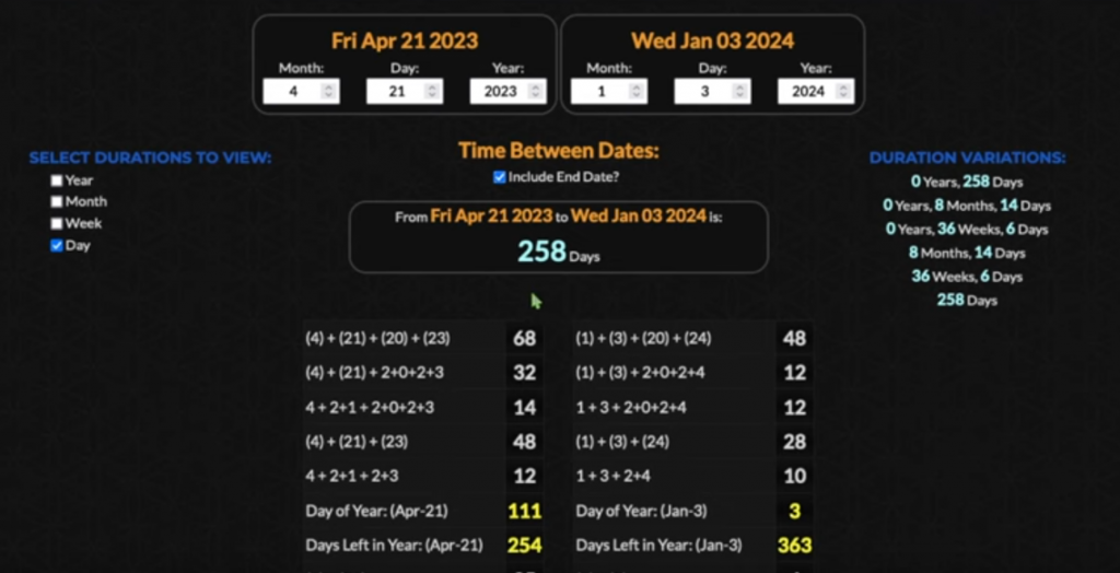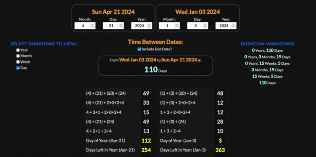 Cependant, si nous excluons la dernière date « Include End Date » et calculons les jours entre la double explosion en Iran et le 98e anniversaire d’Elisabeth II, nous obtenons 109 jours au lieu de 110.
