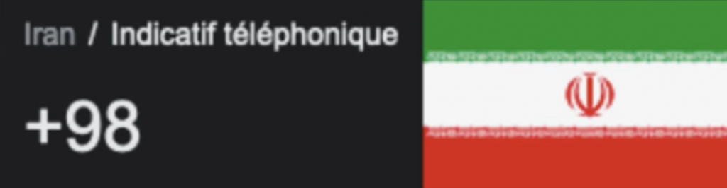 Notons que l’indicatif téléphonique de l’Iran est +98.