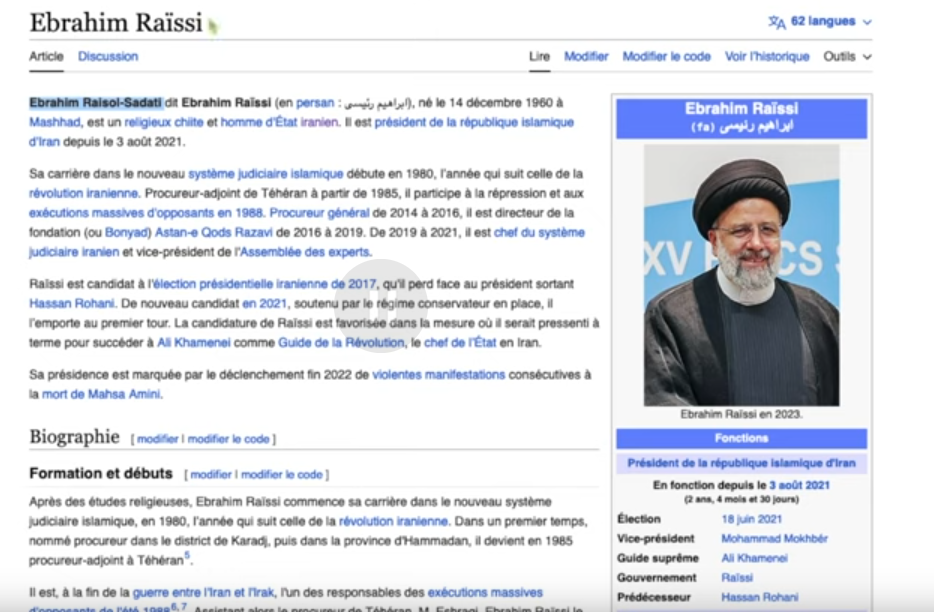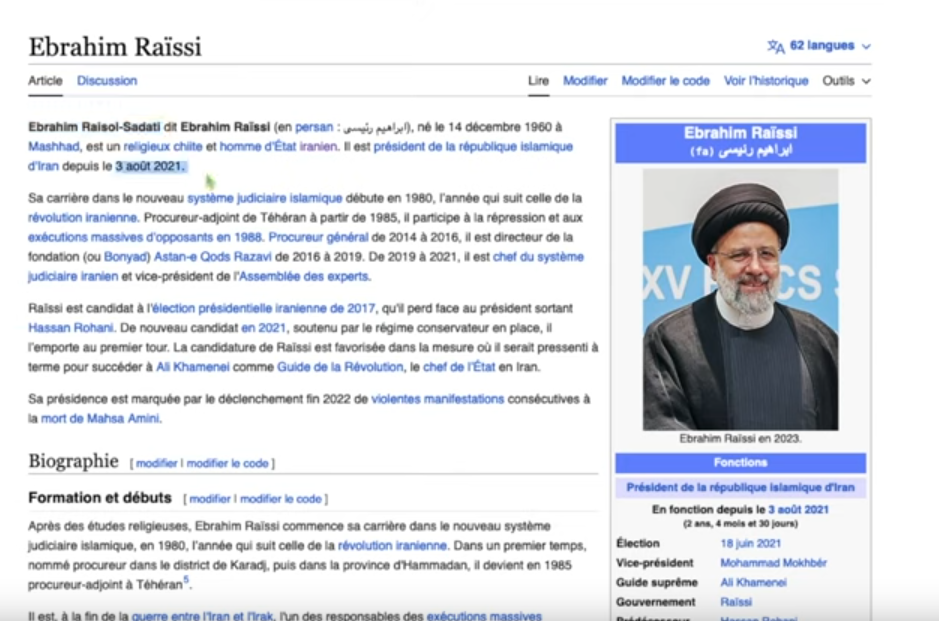 Le président de l’Iran, Ebrahim Raisol Sadati, est né le 14 décembre 1960.