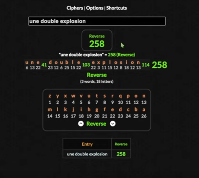 En utilisant le mode « reverse », « une double explosion » équivaut à 258.