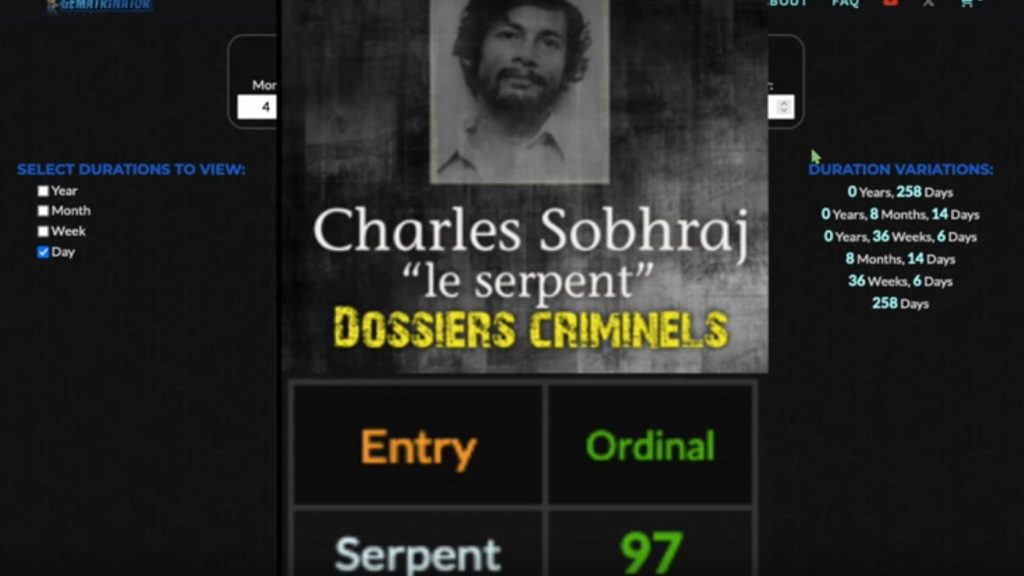 Enfin, n’oublions pas « le serpent » et le chiffre 97, car le célèbre serpent Charles Sobhraj est né le 97e jour de l’année.