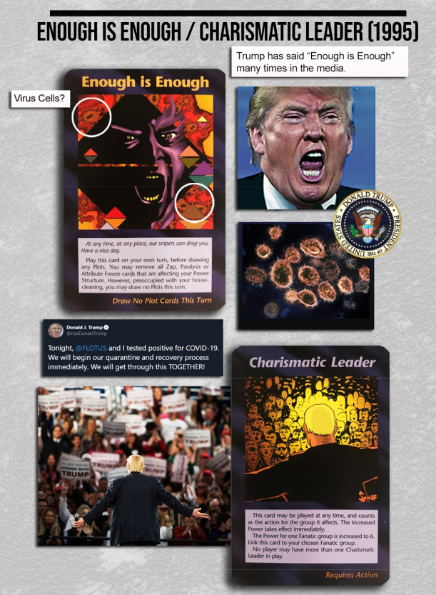 Certains amateurs du jeu affirment que les cartes « Illuminati » ont anticipé des événements historiques, politiques et culturels bien avant qu’ils ne se produisent. Des images énigmatiques représentant des symboles qui évoquent étrangement des événements spécifiques ont été relevées par les chercheurs du paranormal et les amateurs de théories du complot.